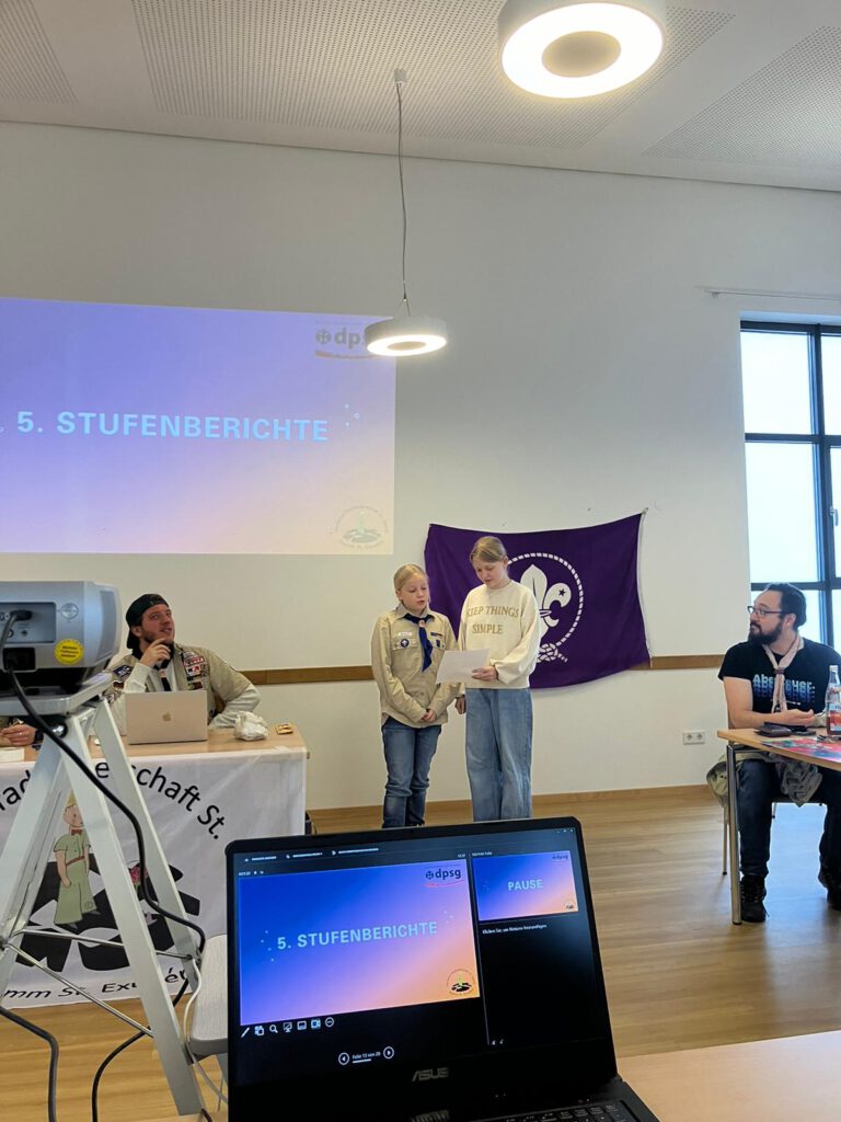 Aus jeder Stufe waren Delegierte da – also Vertreterinnen und Vertreter der Wölflinge, Jungpfadfinder, Pfadfinder und Rover. Sie haben erzählt, was sie dieses Jahr erlebt haben: coole Gruppenstunden, lustige Lager, neue Projekte und viele Abenteuer! 🌲🔥